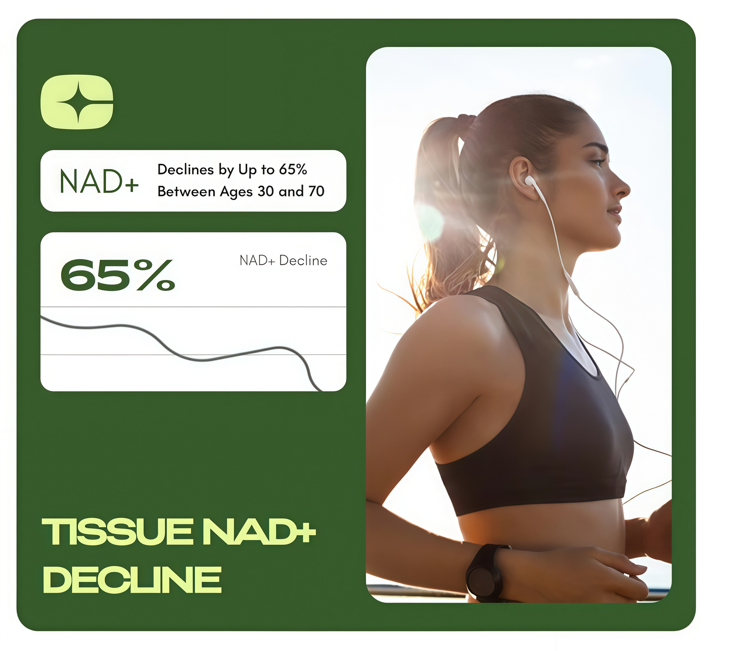 NAD⁺ plays a big role in that. It supports cellular energy, mitochondrial function, and the natural repair processes that help us move and feel our best.*