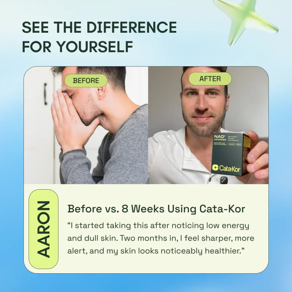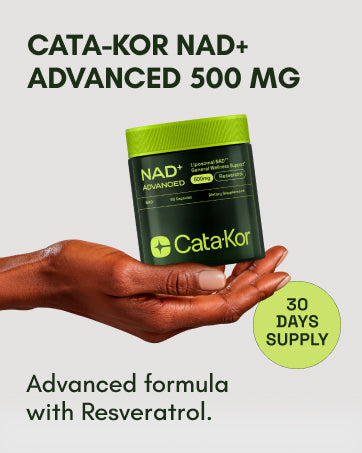 Cata-Kor’s Liposomal NAD+ with Resveratrol is a high-purity NAD supplement designed to support cellular energy and healthy aging.